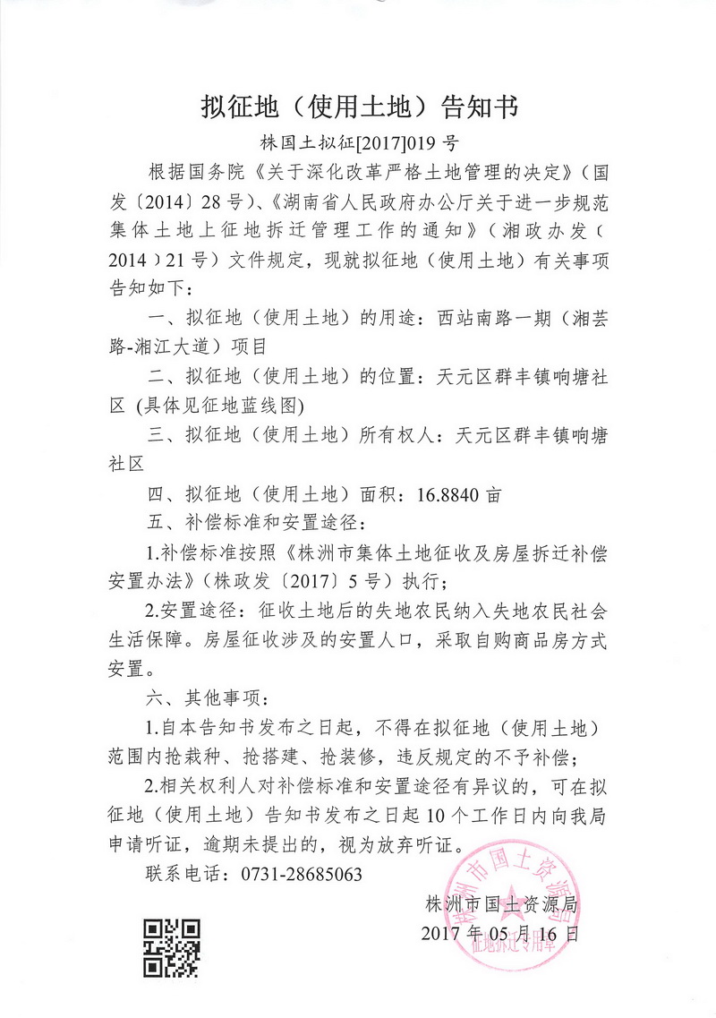 拟征地告知书--西站南路一期(湘芸路-湘江大道)