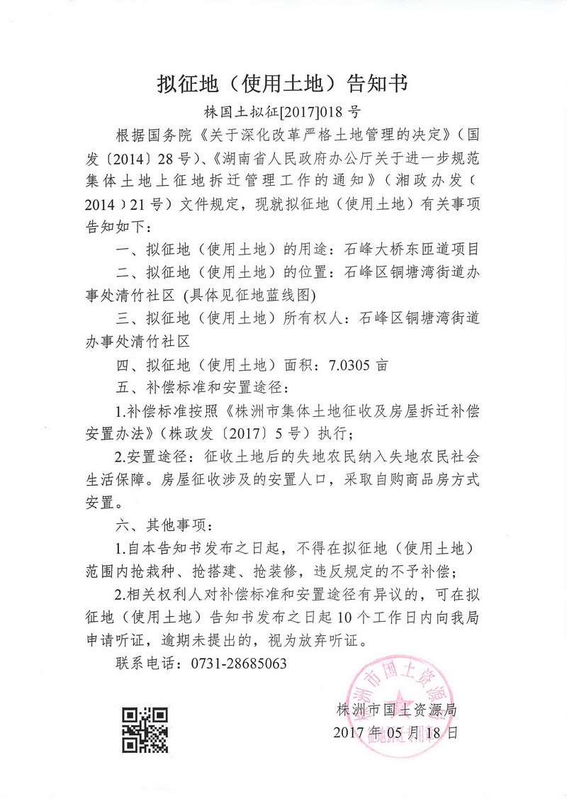 拟征地告知书--石峰大桥东匝道项目