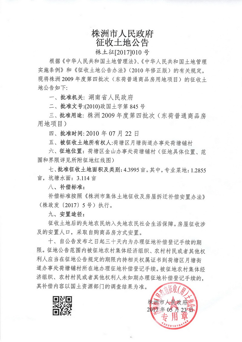 征收公告-株洲2009年度第四批次(东荷普通商品房用地项目)