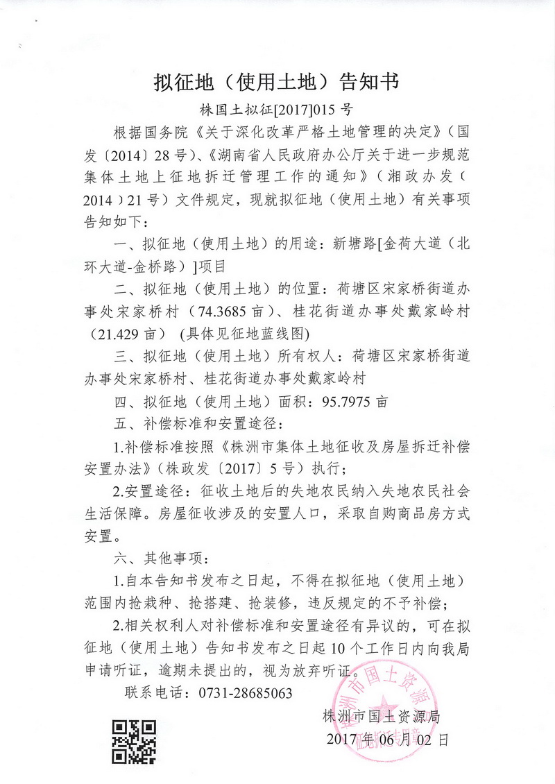 拟征地告知书-新塘路[金荷大道(北环大道-金桥路)]项目