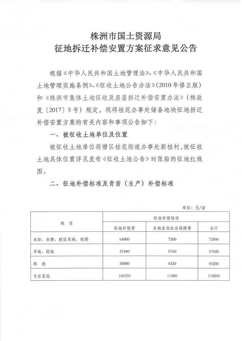 安置方案征求意见公告-桂花办事处储备地块
