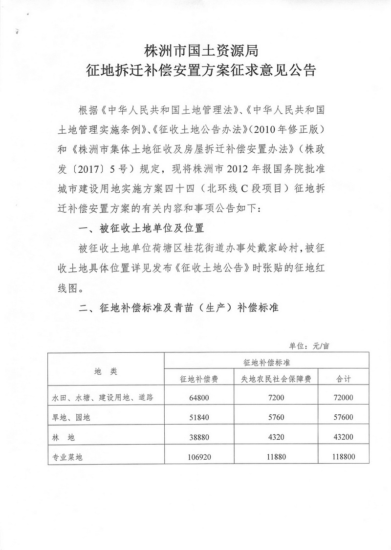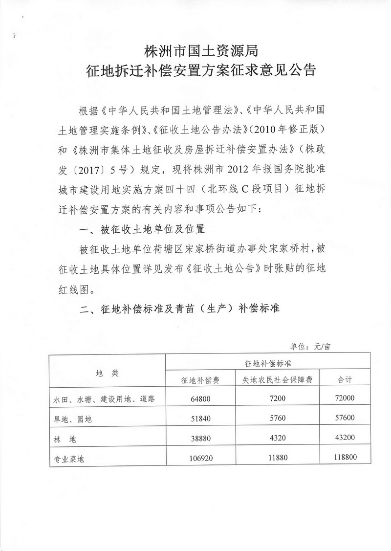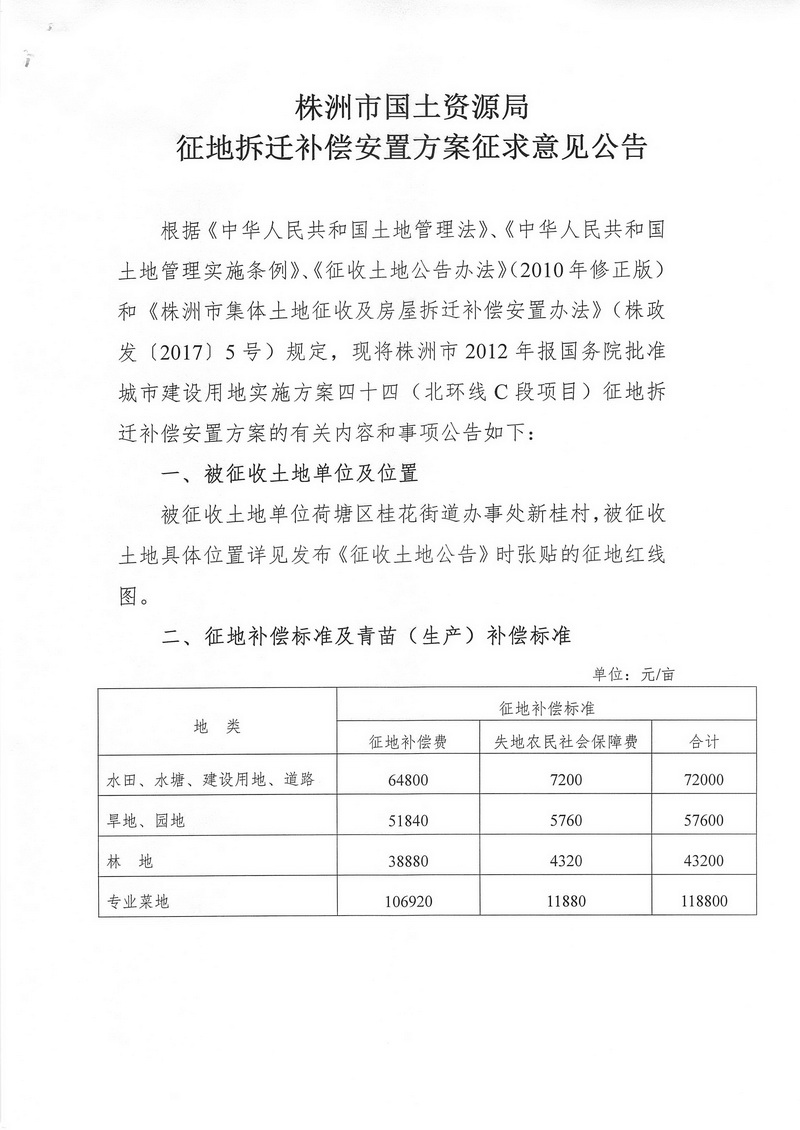 安置方案征求意见公告--北环线C项目