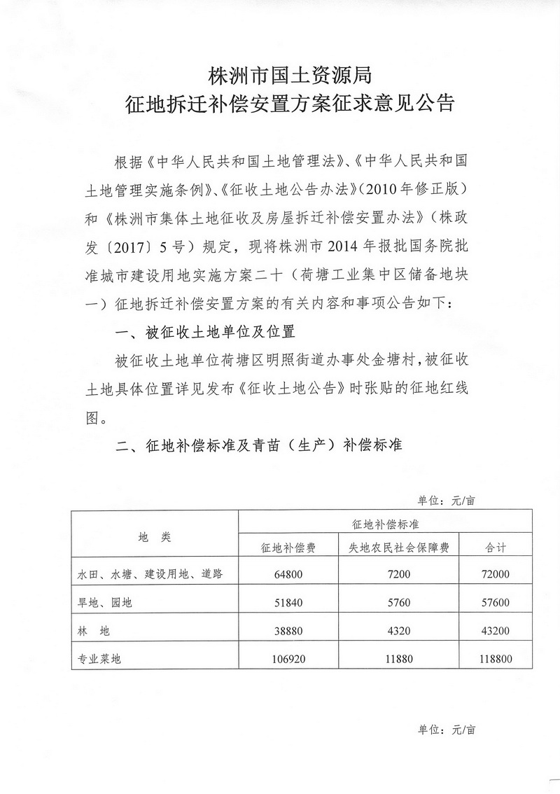 征地拆迁补偿安置方案征求意见公告--荷塘工业集中区储备地块一