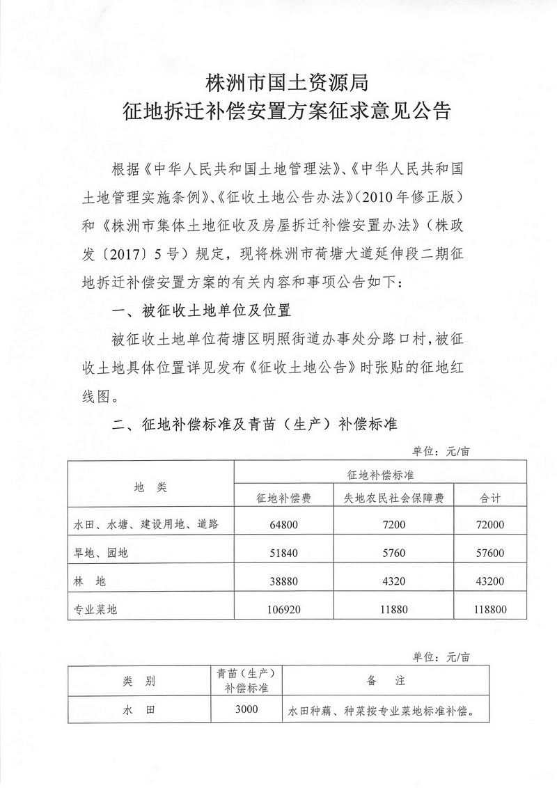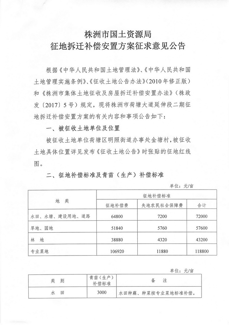 征地拆迁补偿安置方案征求意见公告--株洲市荷塘大道延伸段二期