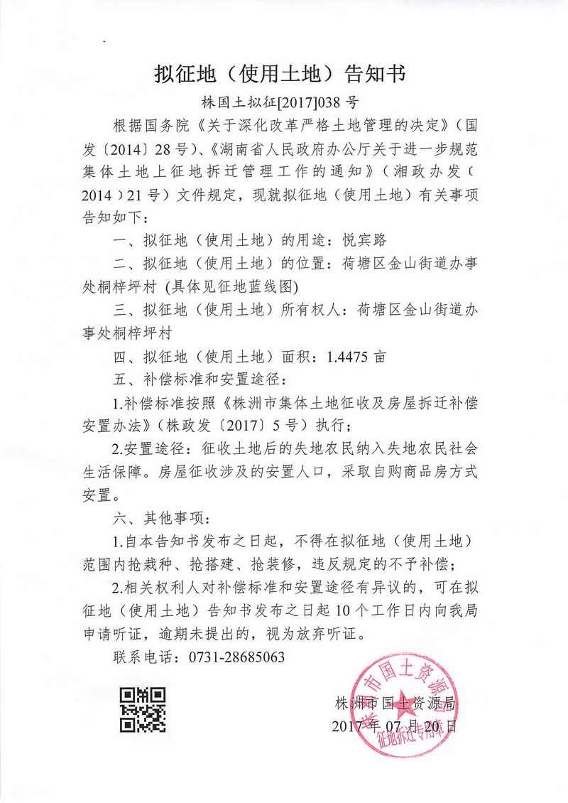 拟征地告知书--悦宾路