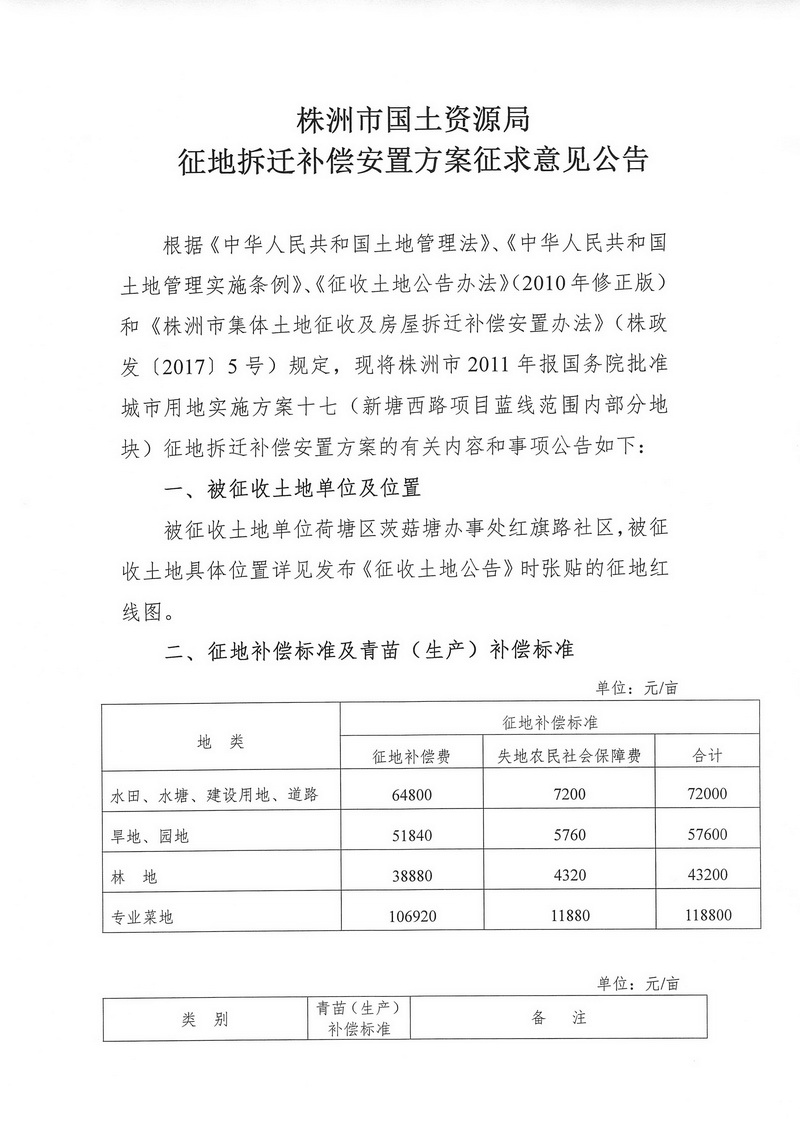 征地拆迁补偿安置方案征求意见公告--新塘西路项目蓝线范围内部分地块