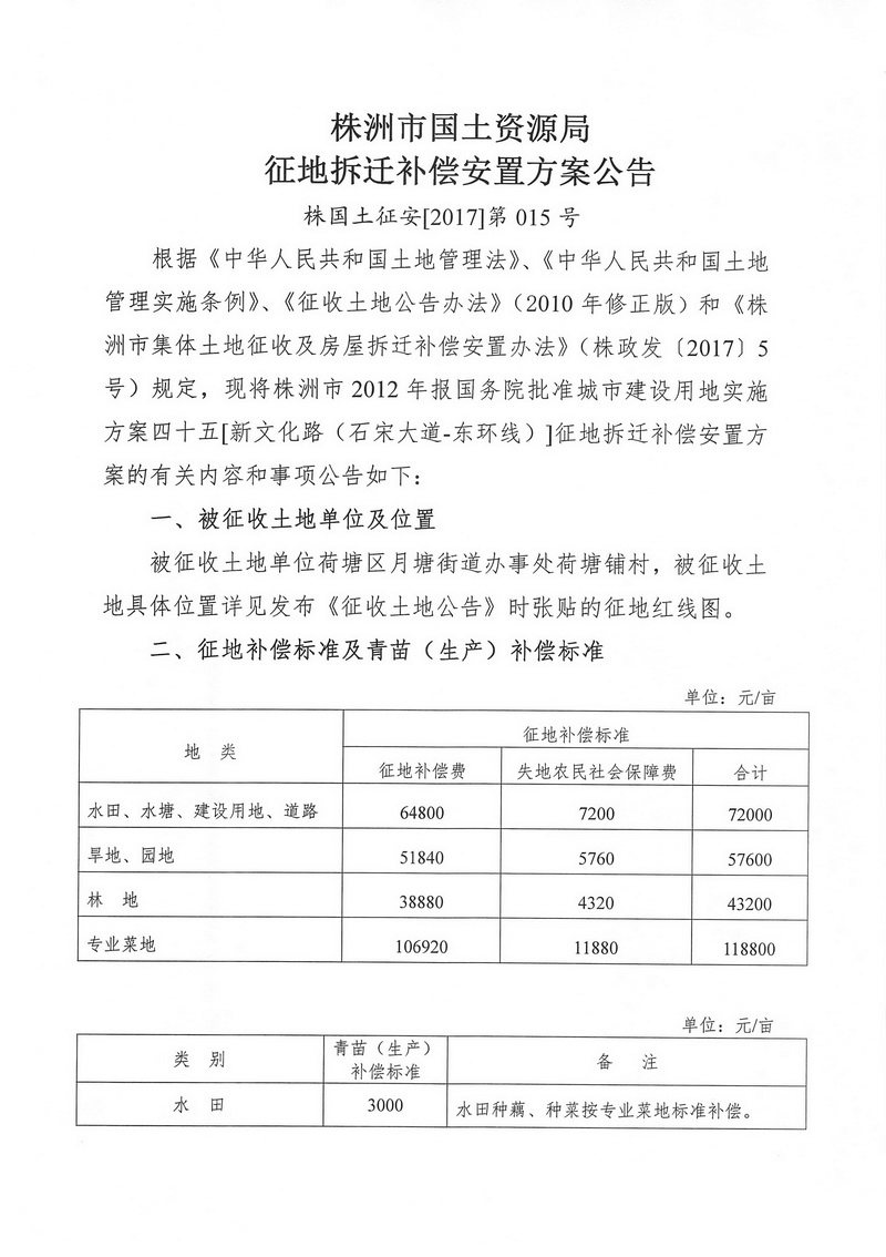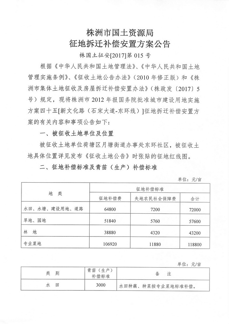 征地拆迁补偿安置方案公告--新文化路(石宋大道--东环线)项目