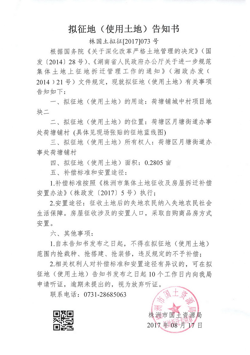 拟征地告知书--荷塘铺城中村项目地块二