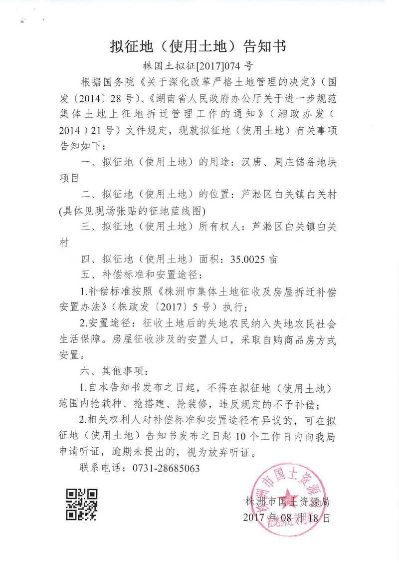 拟征地告知书--汉唐、周庄储备地块项目