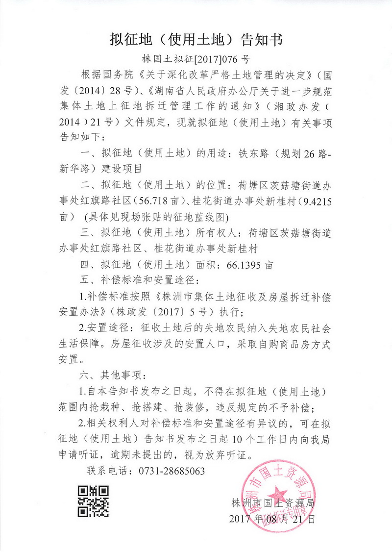拟征地告知书--铁东路(规划26路-新华路)建设项目