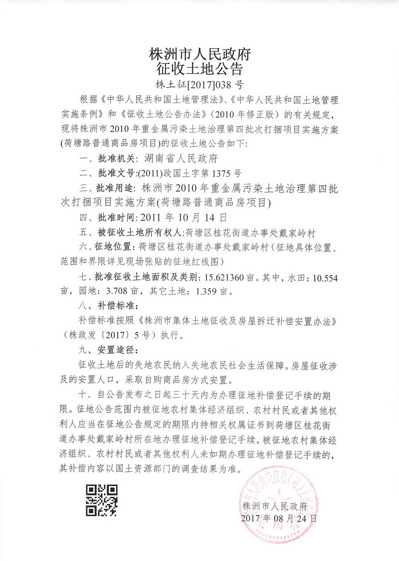 征收土地公告--荷塘路普通商品房项目