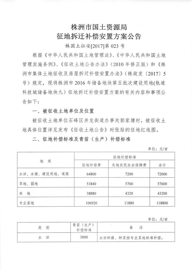 征地拆迁补偿安置方案公告--轨道科技城储备地块九