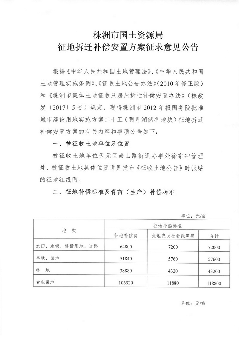 征地拆迁补偿安置方案征求意见公告--明月湖储备地块