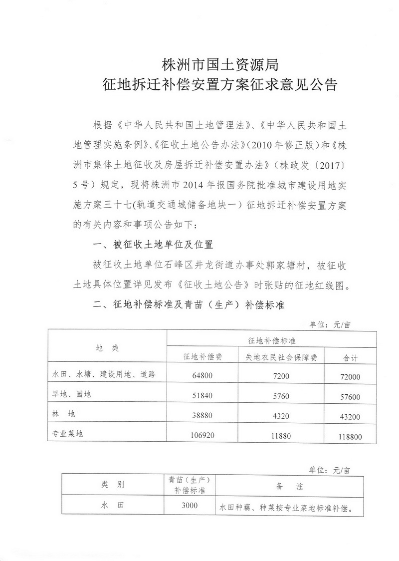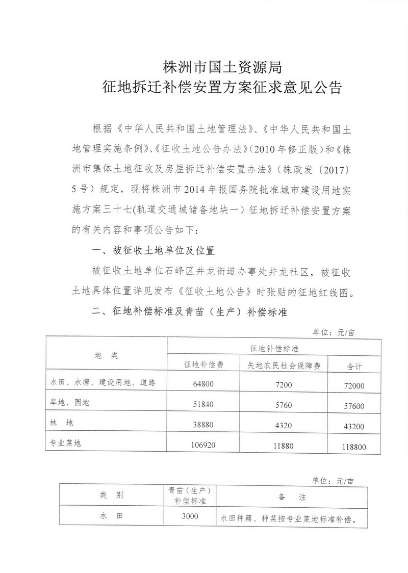 征地拆迁补偿安置方案征求意见公告--轨道交通城储备地块一