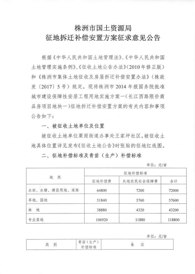 征地拆迁补偿安置方案征求意见公告--长江西路限价商品房项目地块一