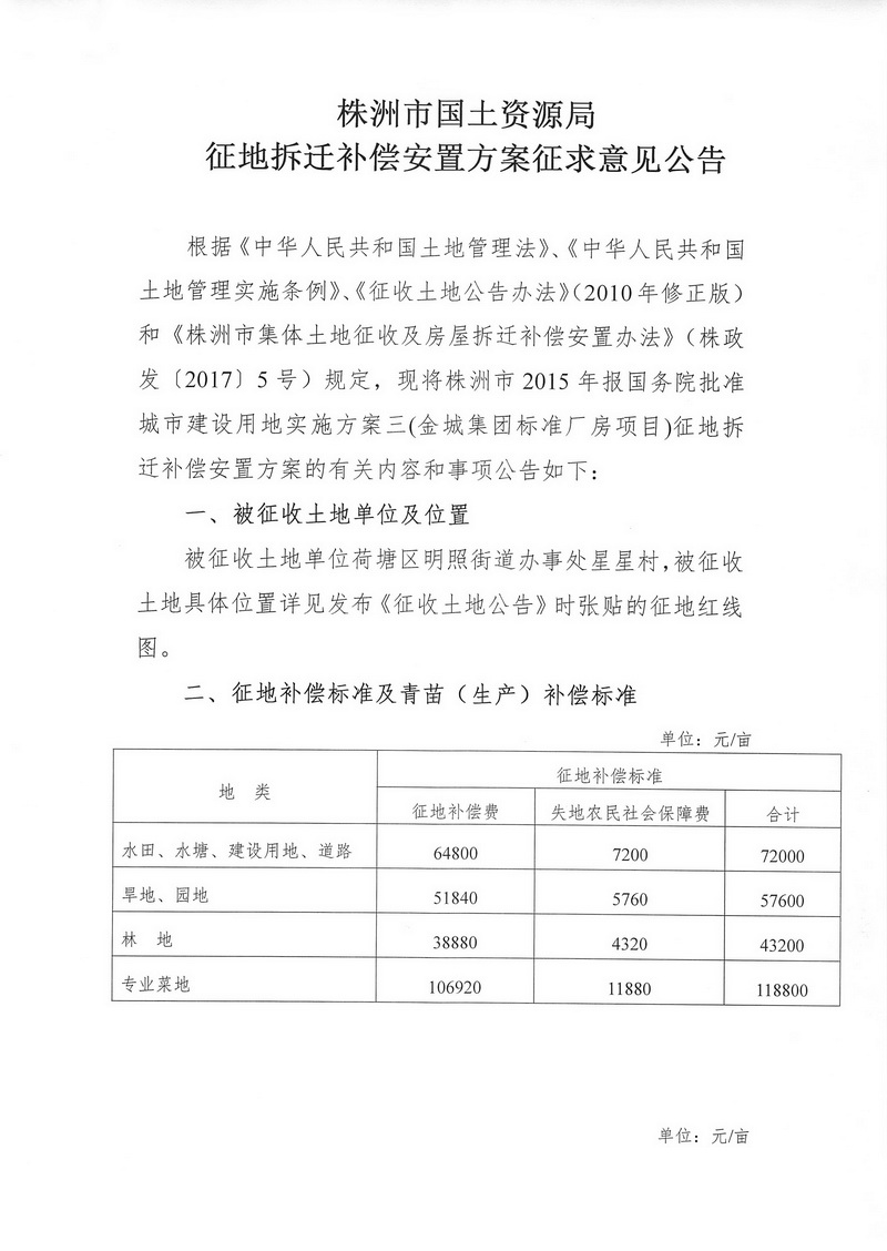 征地拆迁补偿安置方案征求意见公告--金城集团标准厂房项目