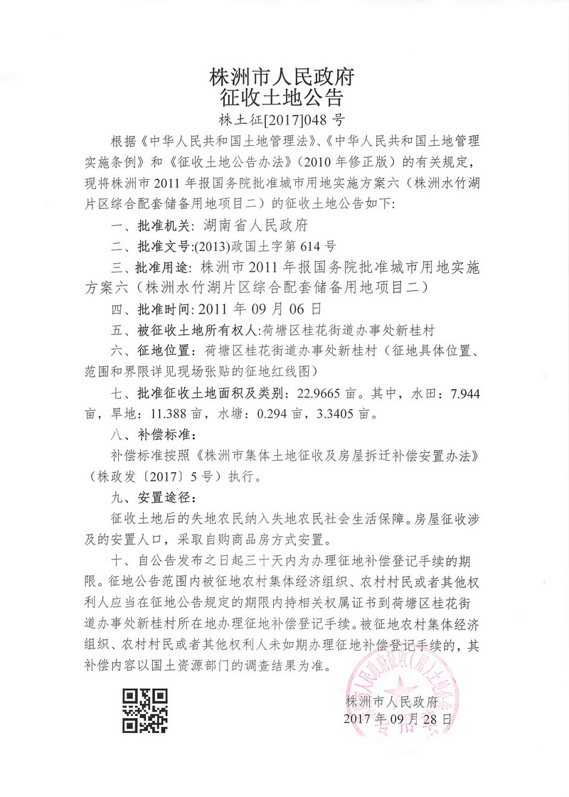 征收土地公告--株洲水竹湖片区综合配套储备用地项目二