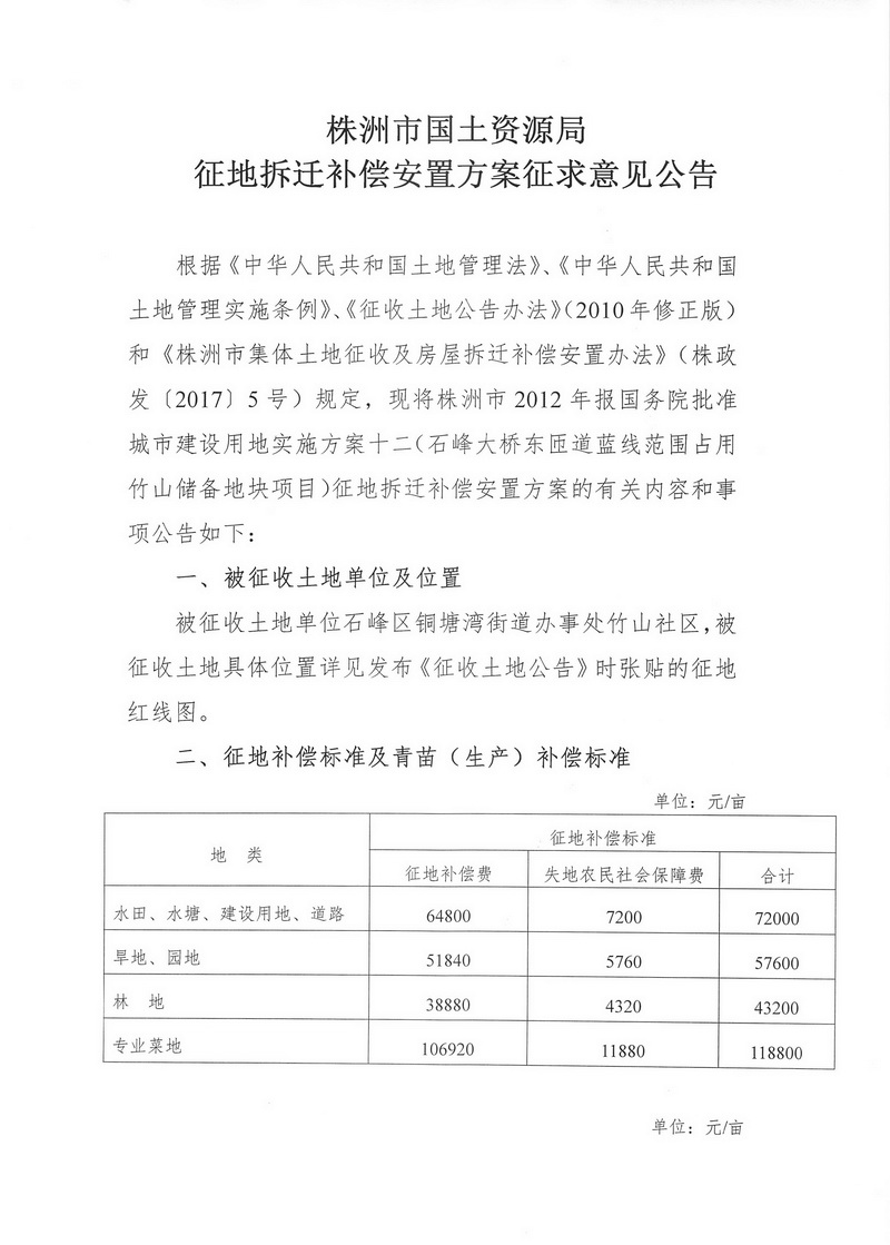 征地拆迁补偿安置方案征求意见公告--石峰大桥东匝道蓝线范围占用竹山储备地块项目