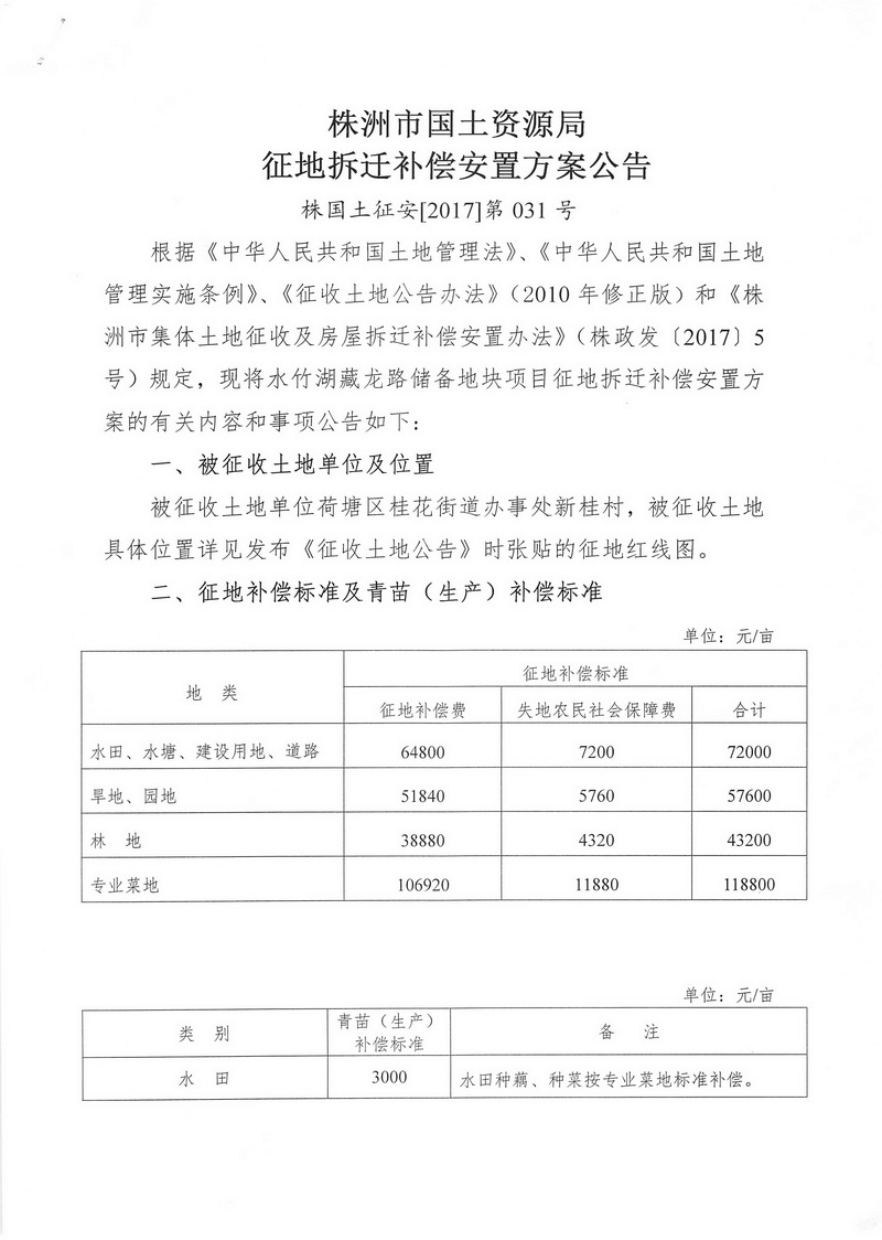 征地拆迁补偿安置方案公告--水竹湖藏龙路储备地块项目
