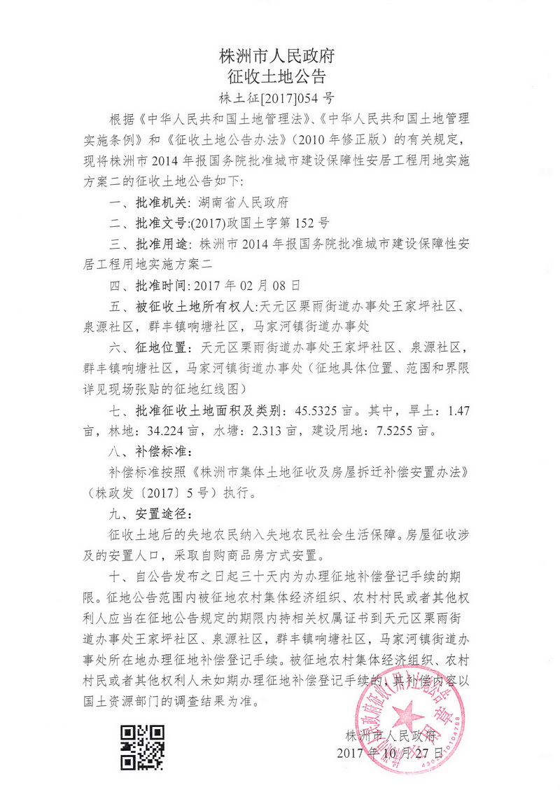 征收土地公告--株洲市2014年报城市建设保障国务院批准城市建设保障性安居工程用地实施方案二项目