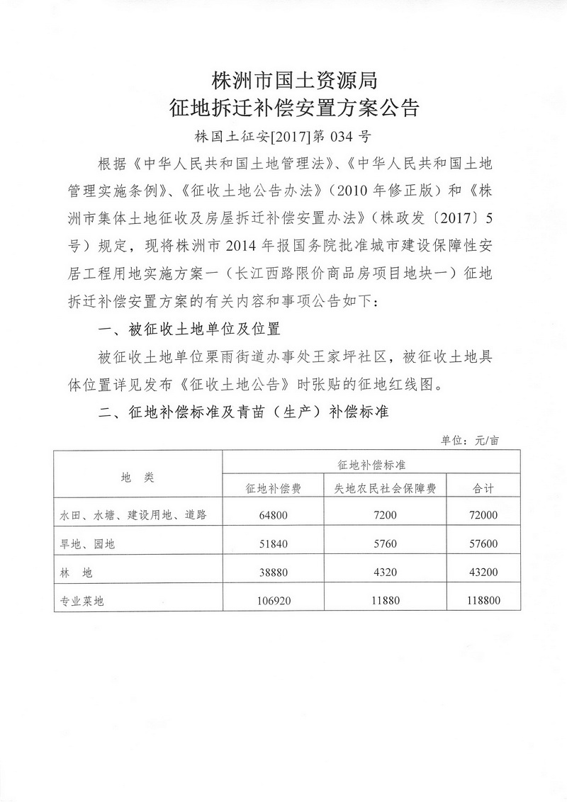 征地拆迁补偿安置方案公告--长江西路限价商品房项目地块一