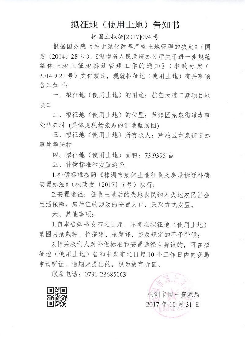 拟征地告知书--航空大道二期项目地块二