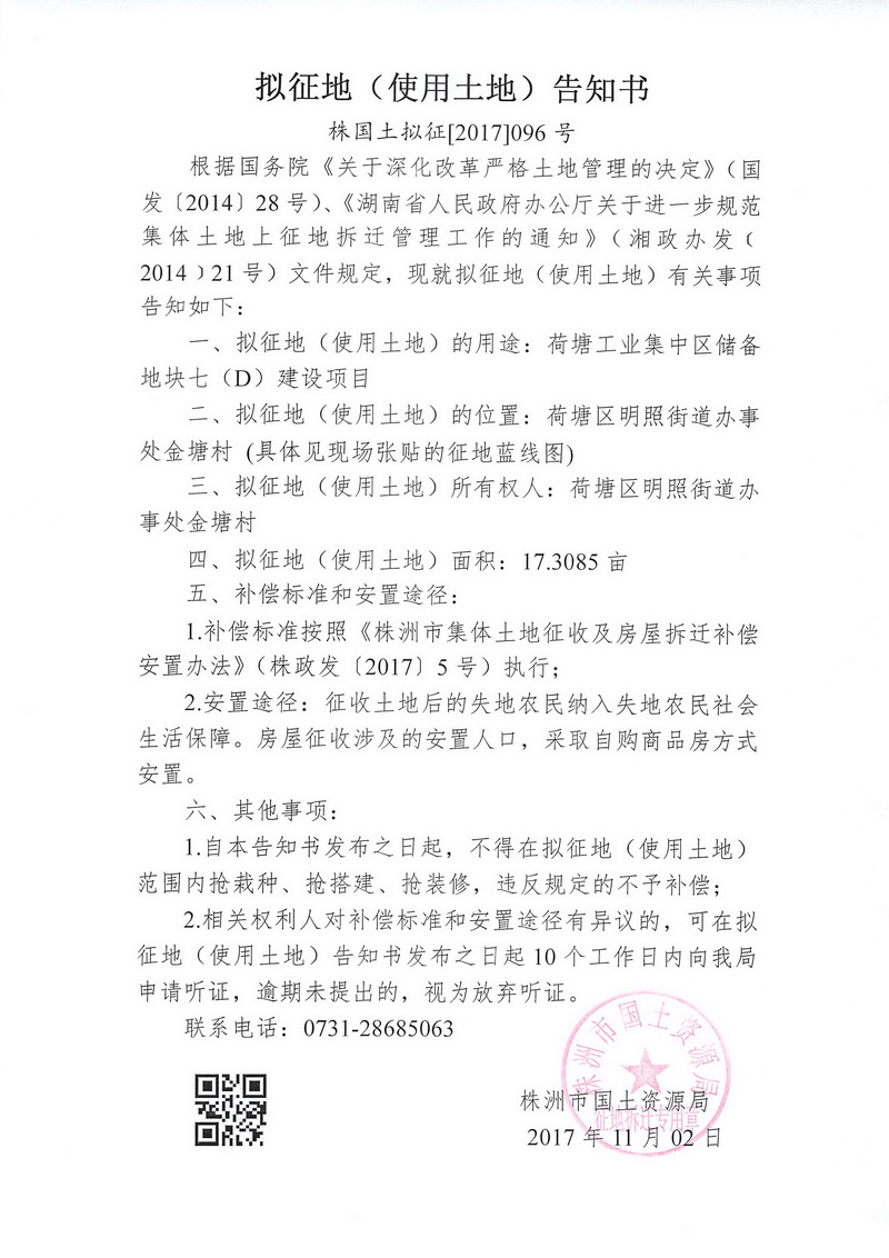 拟征地告知书--荷塘工业集中区储备地块七(D)建设项目