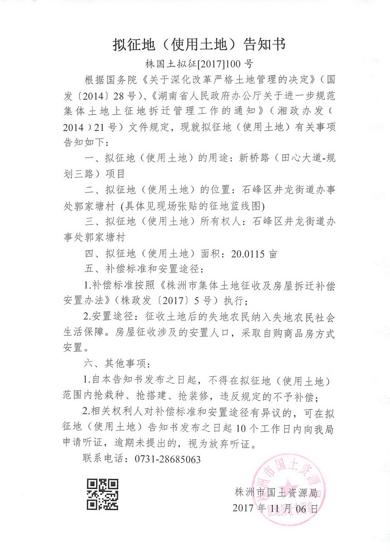 拟征地告知书--新桥路(田心大道-规划三路)项目