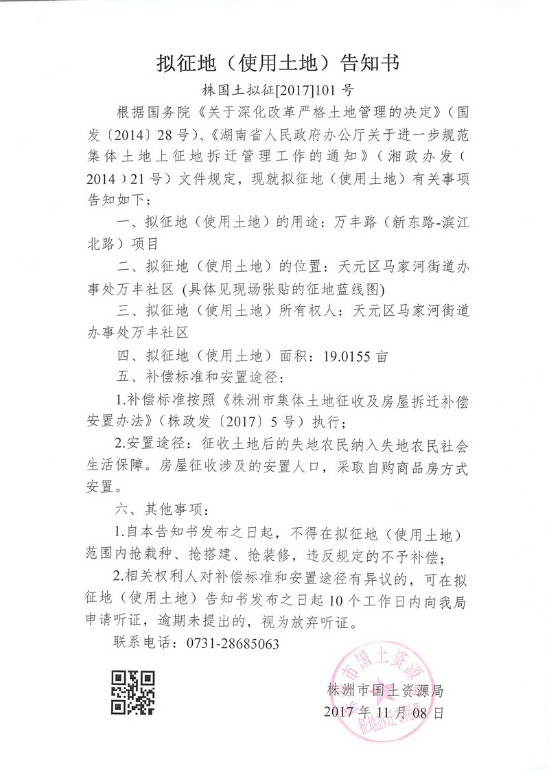 拟征地告知书--万丰路项目(新东路--滨江北路)项目