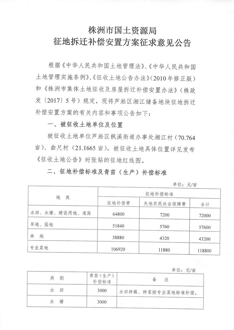 征地拆迁补偿安置方案征求意见公告--芦淞区湘江储备地块项目
