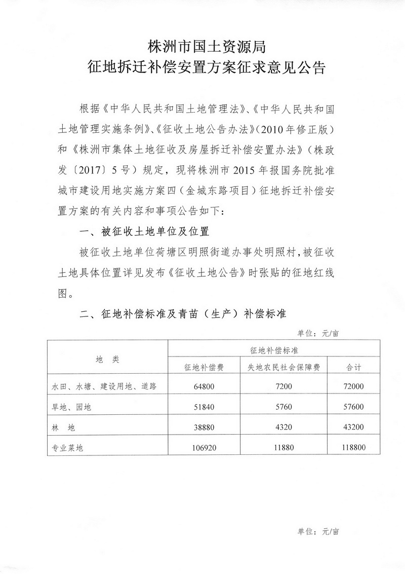 征地拆迁补偿安置方案征求意见公告--金城东路