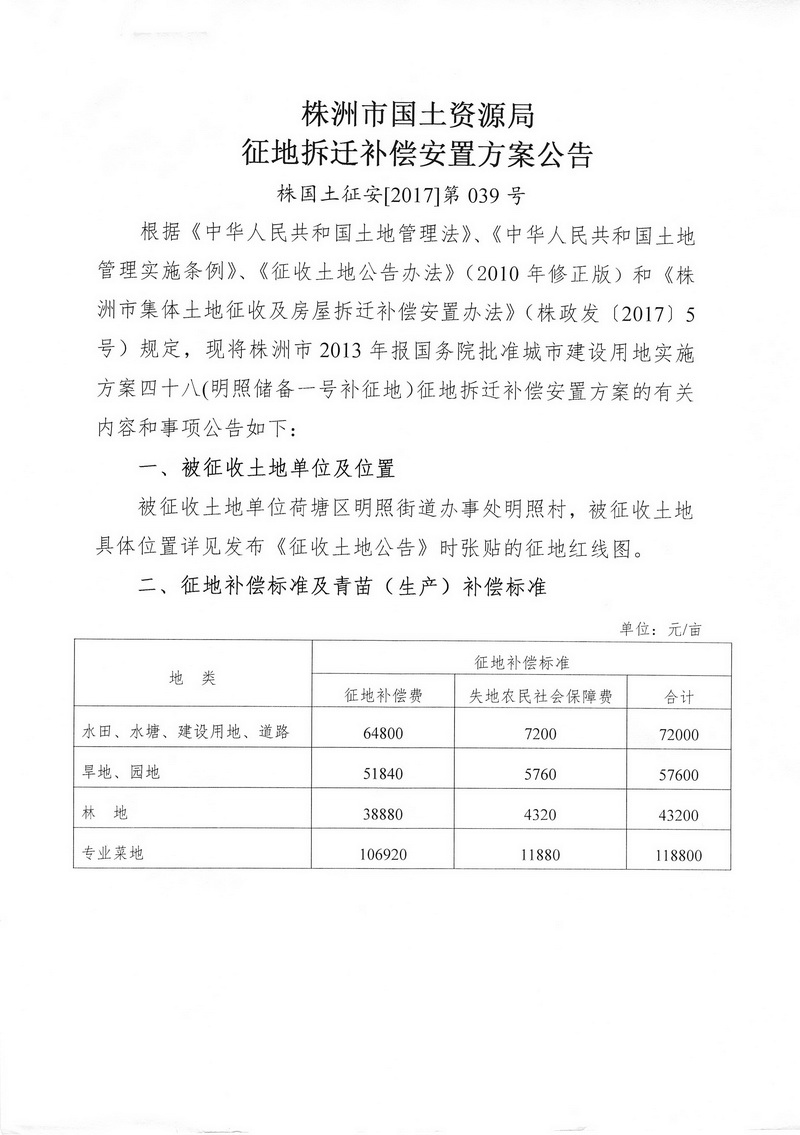 征地拆迁补偿安置方案公告--明照储备一号补征地项目