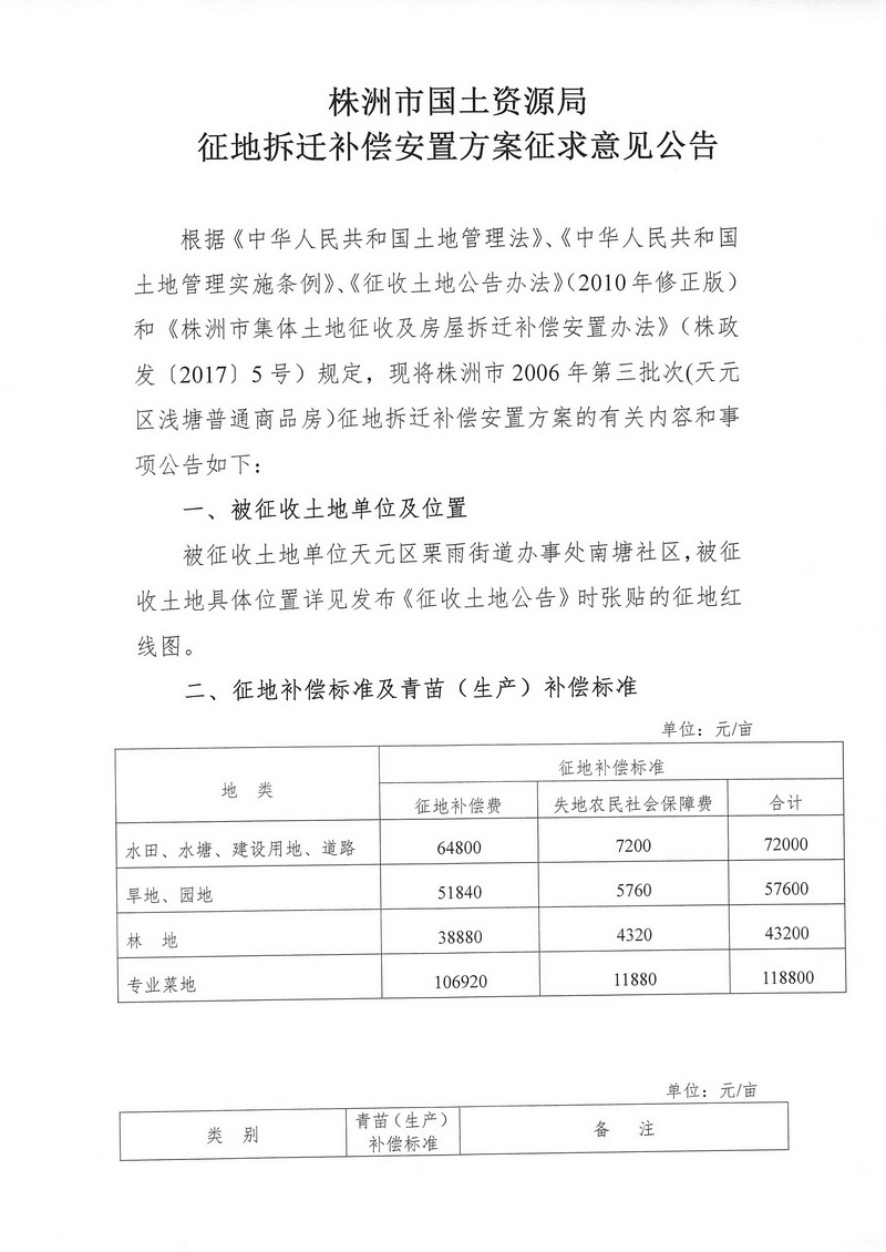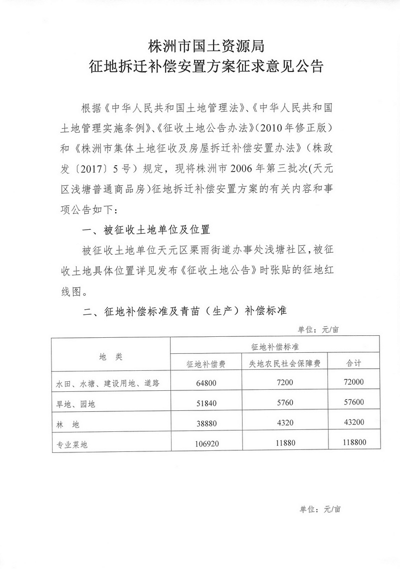征地拆迁补偿安置方案征求意见公告--天元区浅塘普通商品房项目
