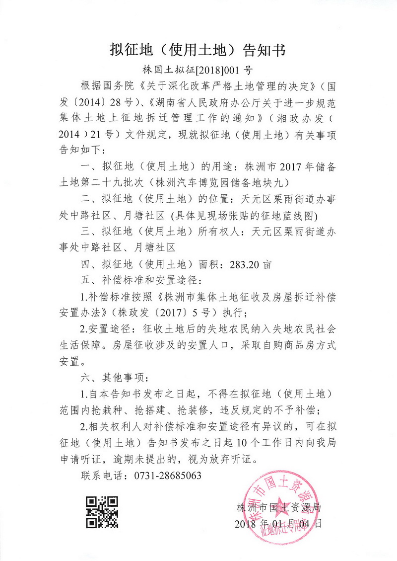 拟征地告知书--株洲汽车博览园储备地块九