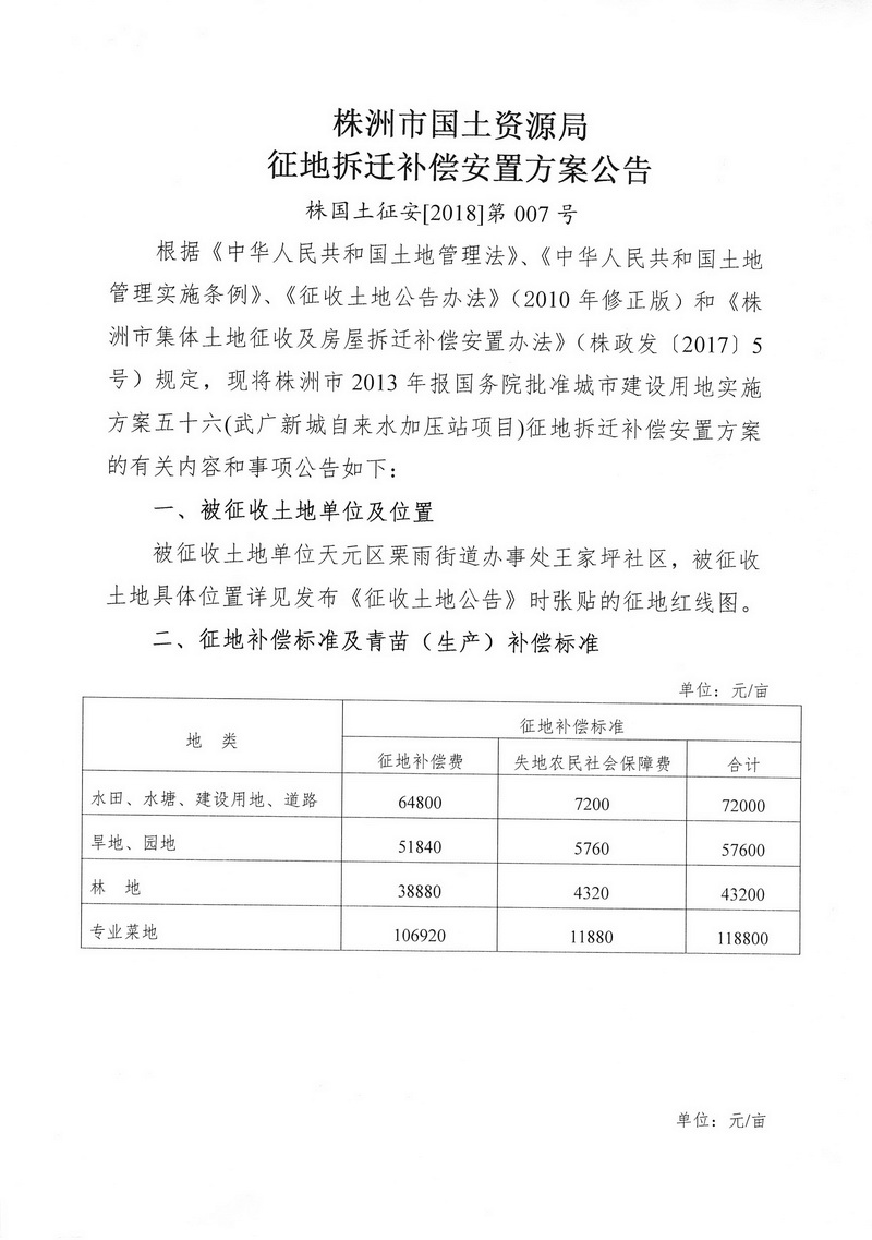 征地拆迁安置补偿方案公告--武广新城自来水加压站项目
