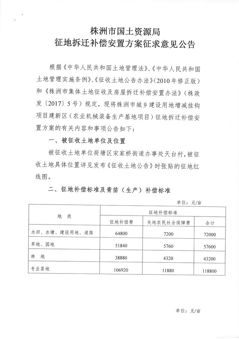 征地拆迁补偿安置方案征求意见公告--农业机械装备生产基地项目