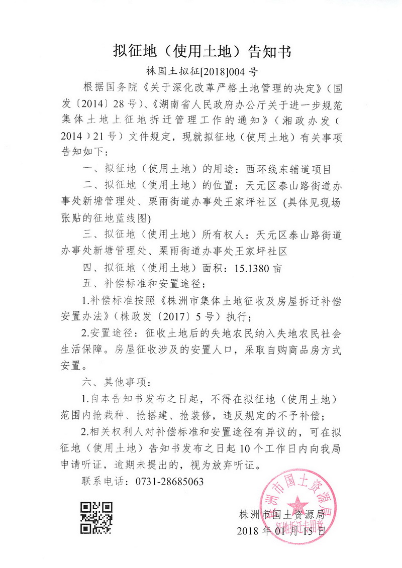 拟征地告知书--西环线东辅道项目