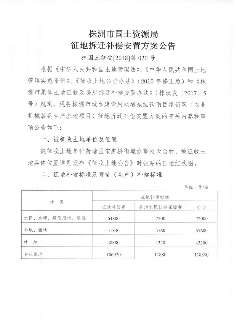征地拆迁补偿安置方案公告--农业机械装备生产基地项目