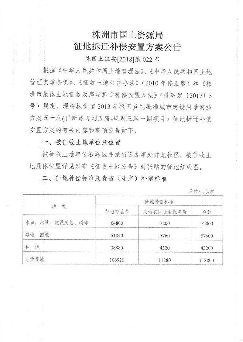 征地拆迁补偿安置方案公告--日新路规划五路--规划三路一期项目