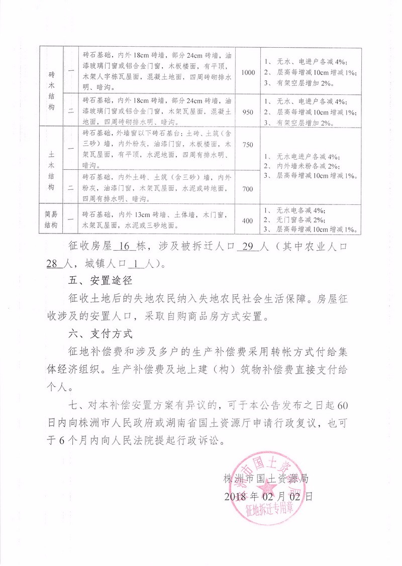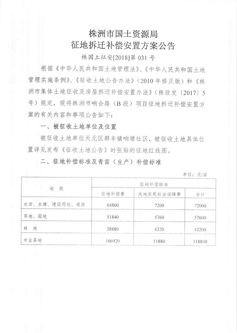 征地拆迁补偿安置方案公告--株洲市响合路(B段)项目