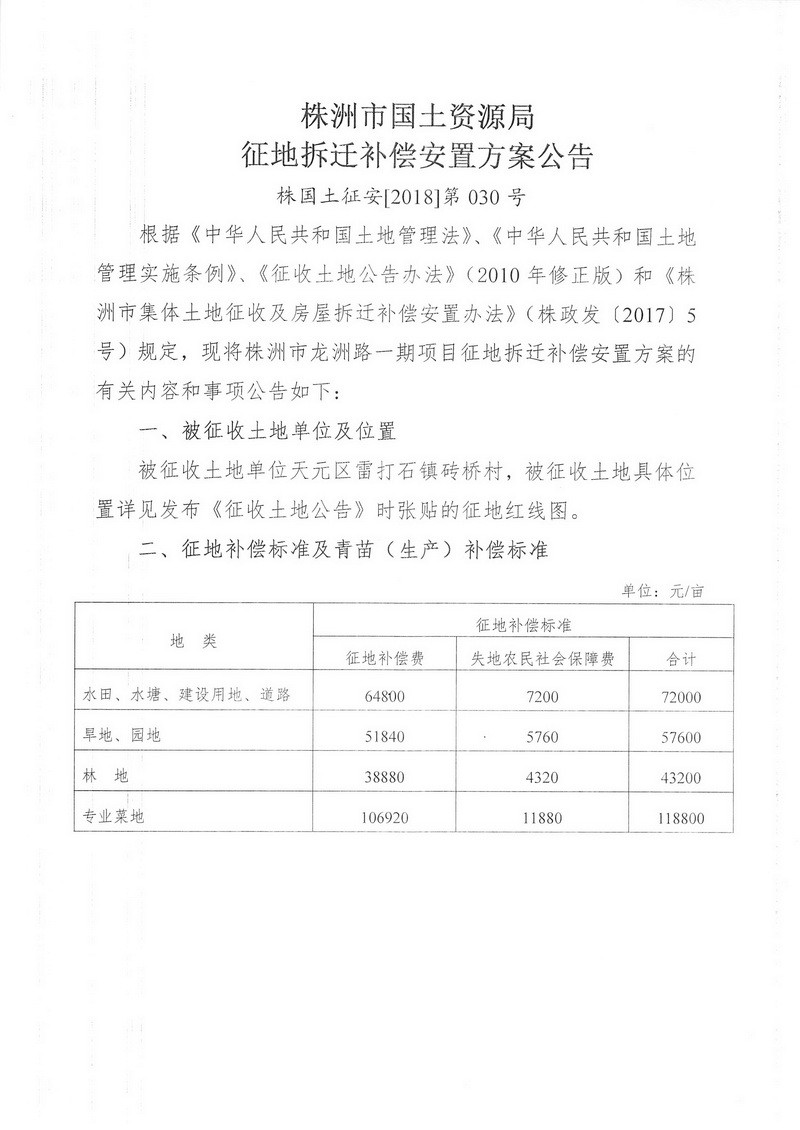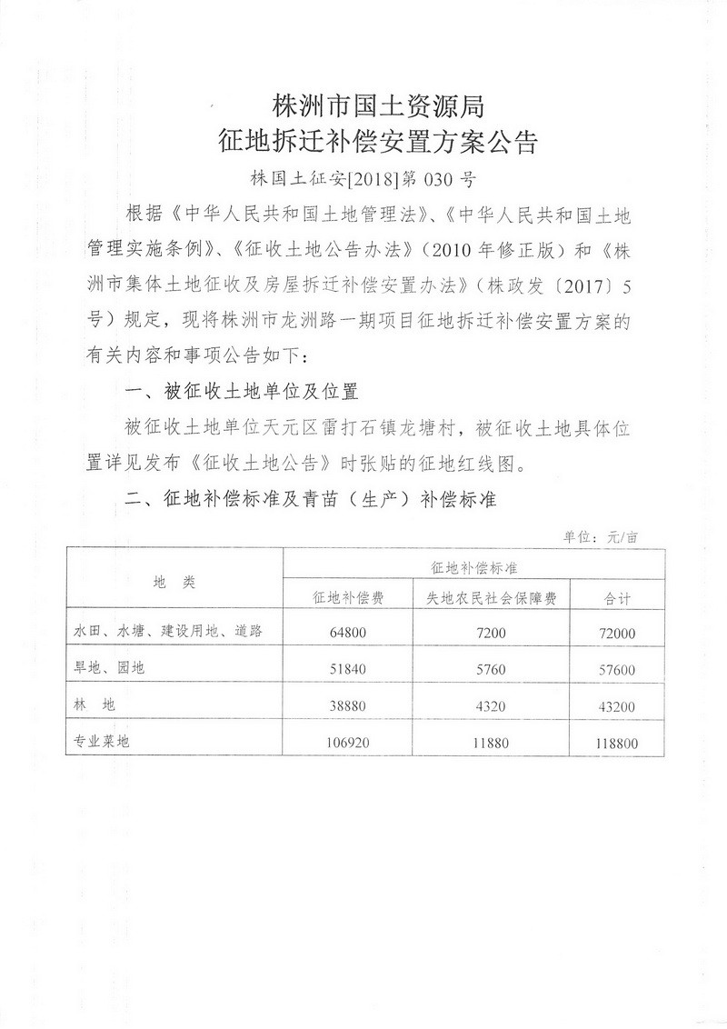 征地拆迁补偿安置方案公告--株洲市龙洲路一期项目
