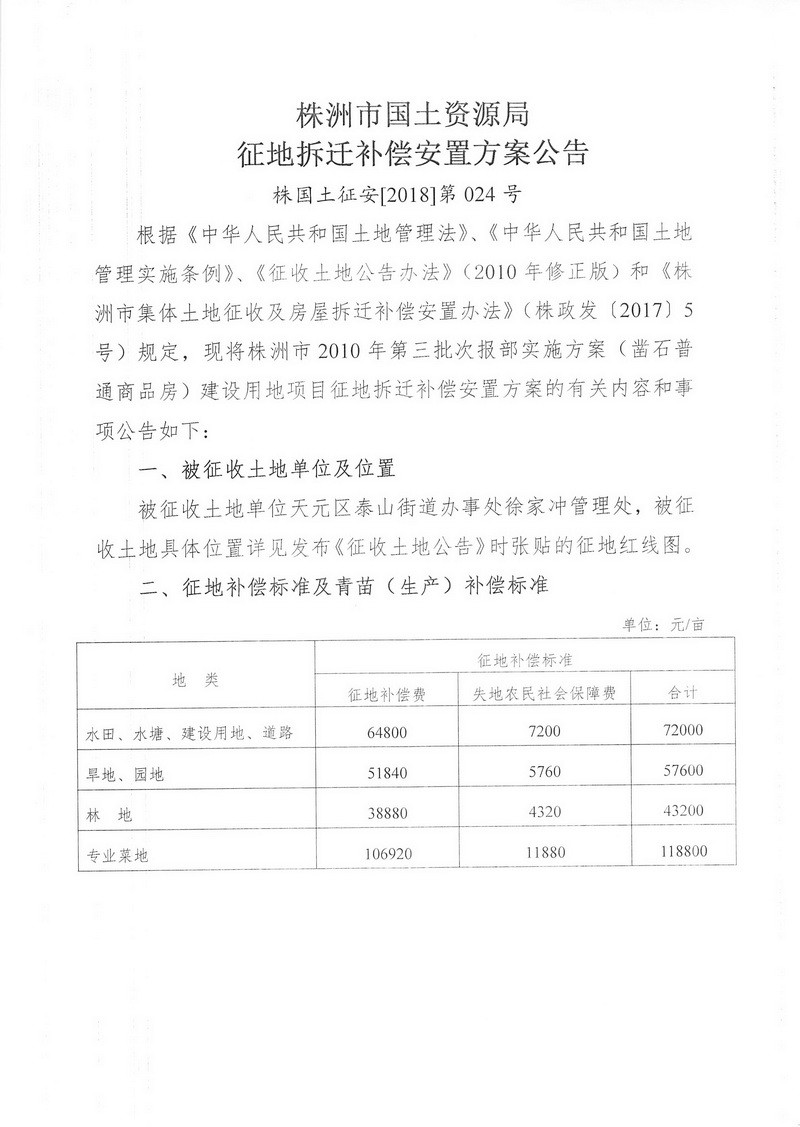 征地拆迁补偿安置方案公告-凿石普通商品房