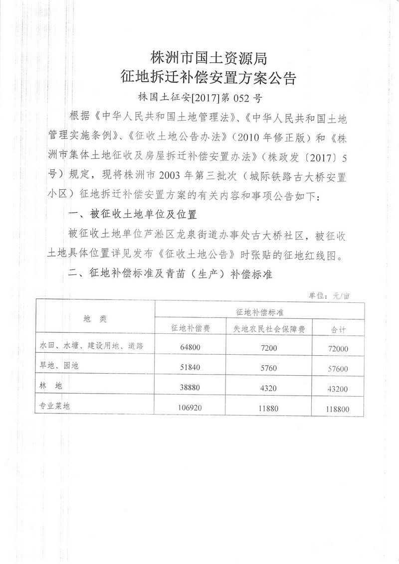 征地拆迁补偿安置方案公告-城际铁路古大桥安置小区