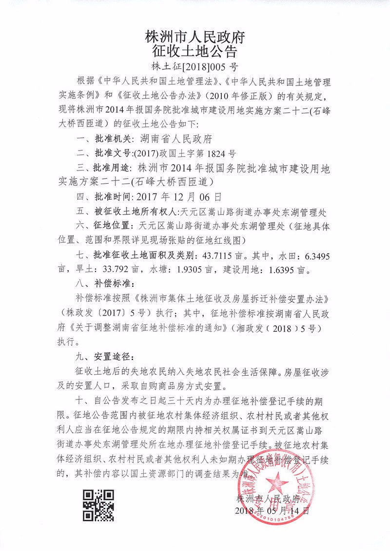 征收土地公告--石峰大桥西匝道项目