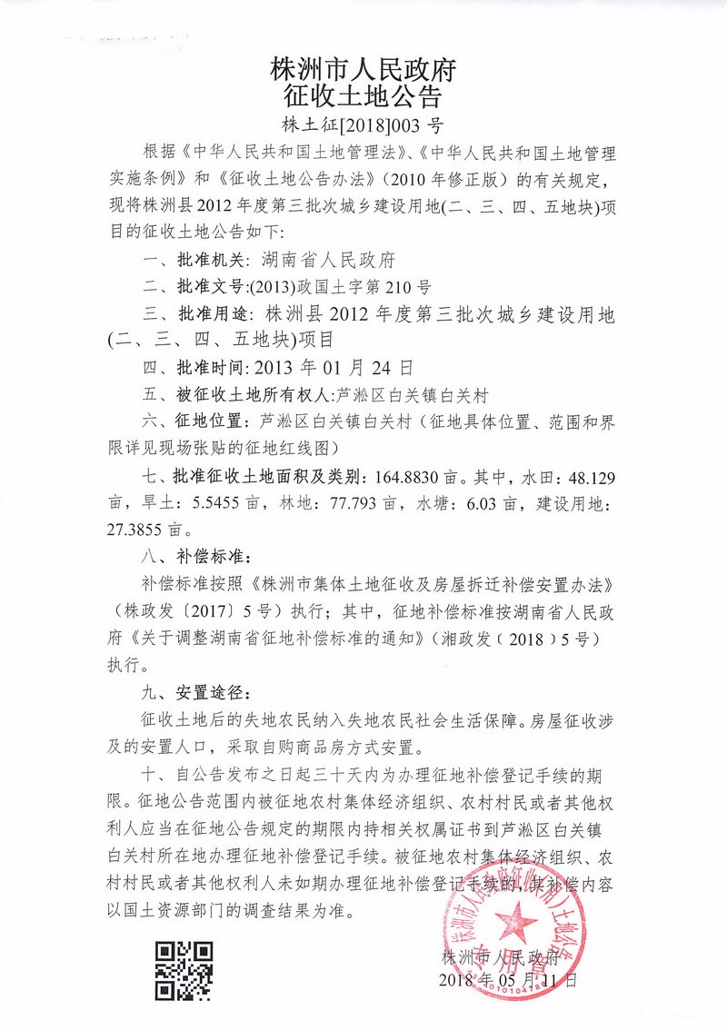 征收土地公告--株洲县2012年度第三批次城乡建设用地(二、三、四、五)项目