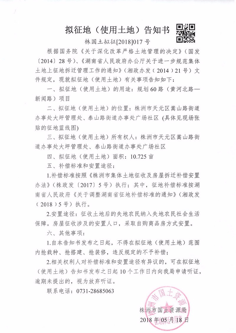 拟征地告知书--规划60路(黄河北路-新闻路)项目