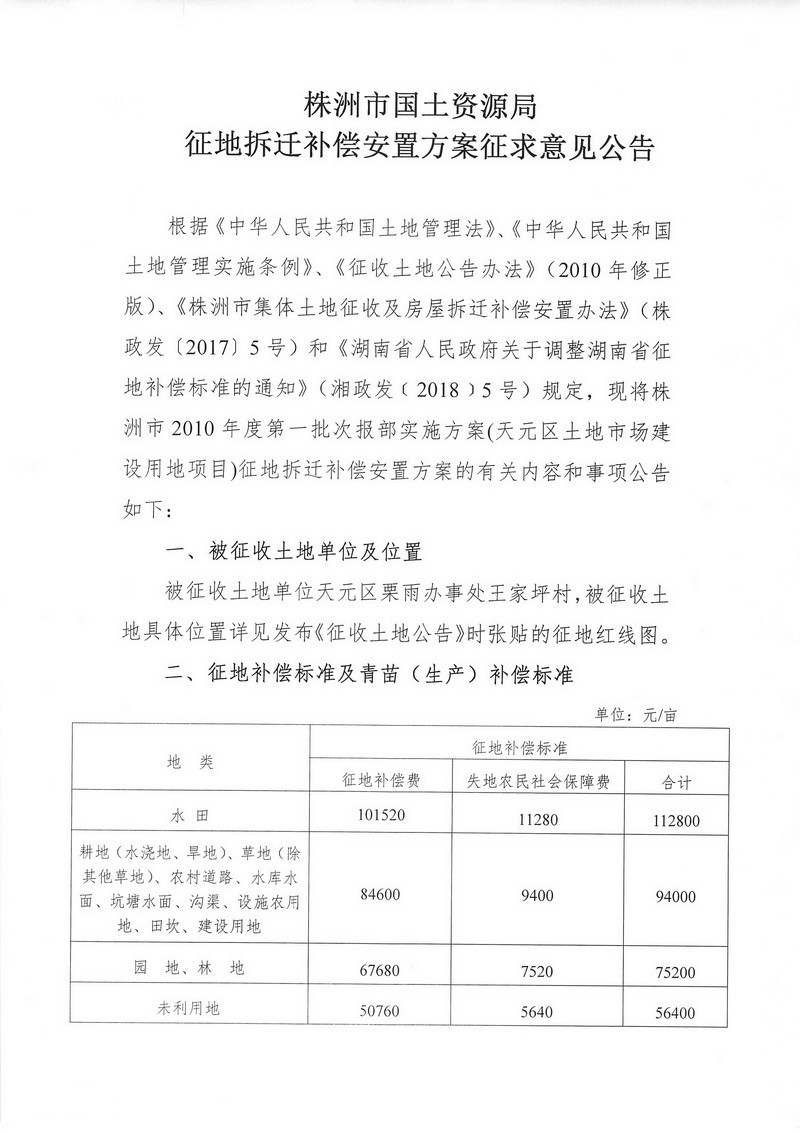征地拆迁补偿安置方案征求意见公告--天元区土地市场建设用地项目
