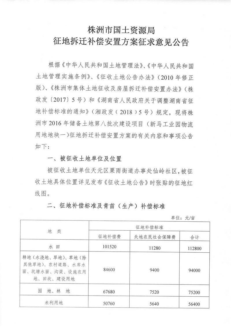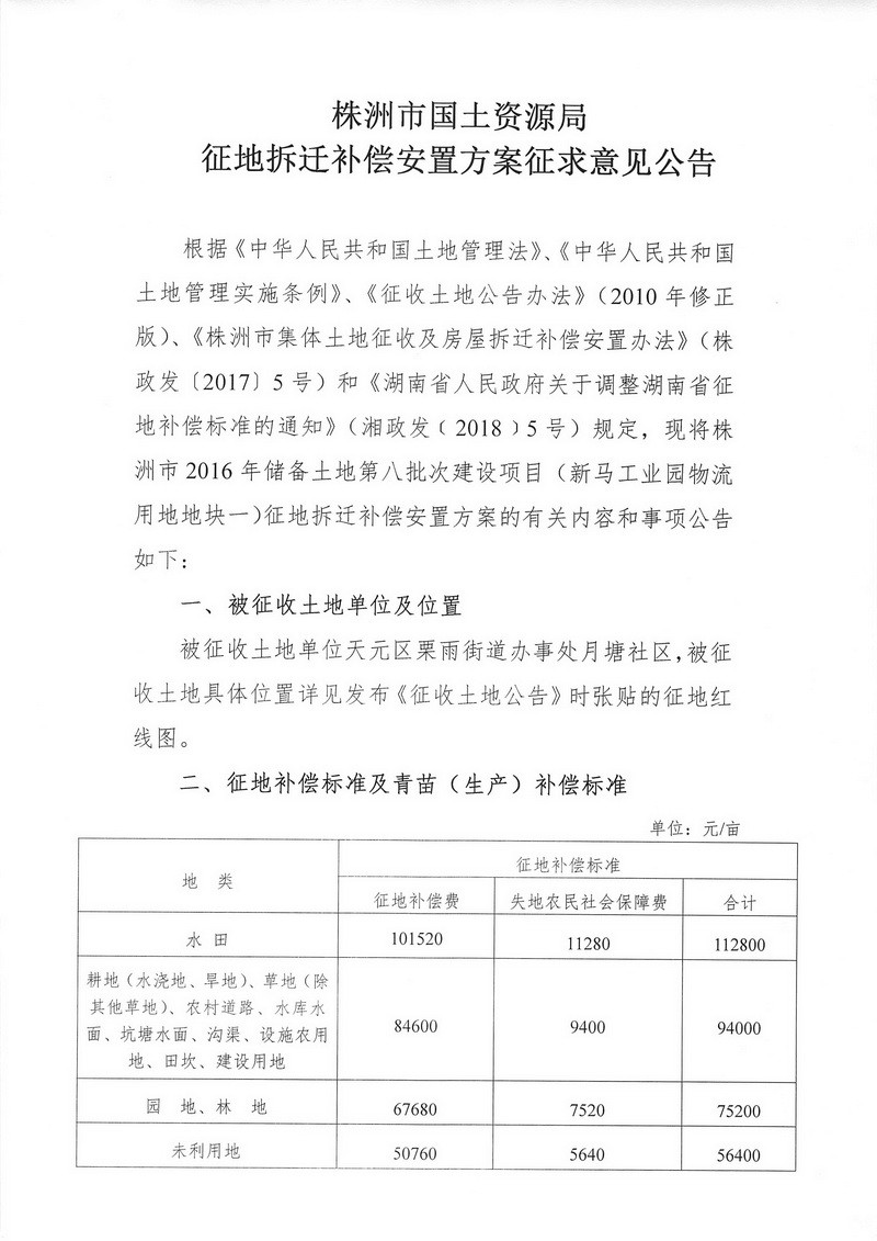 征地拆迁补偿安置方案征求意见公告--新马工业园物流用地地块一