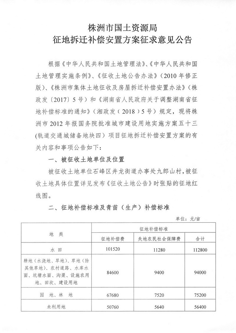 征地拆迁补偿安置方案征求意见公告--轨道交通城储备地块四