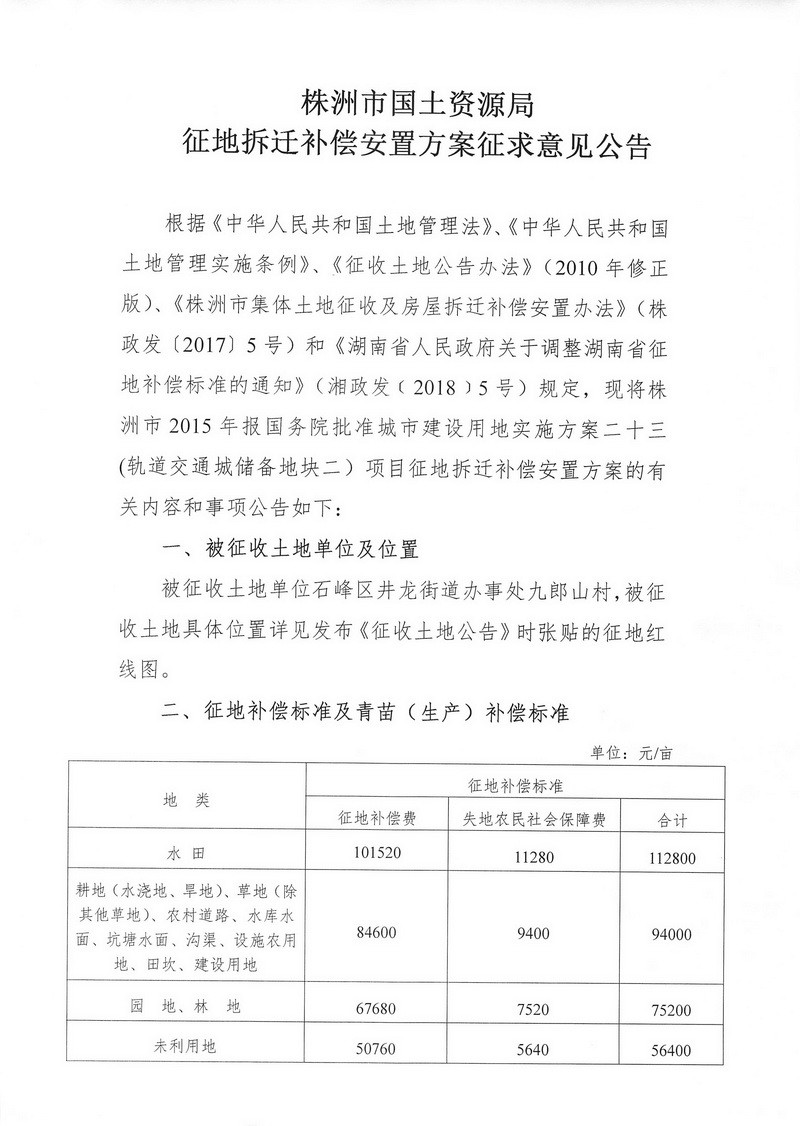 征地拆迁补偿安置方案征求意见公告--轨道交通城储备地块
